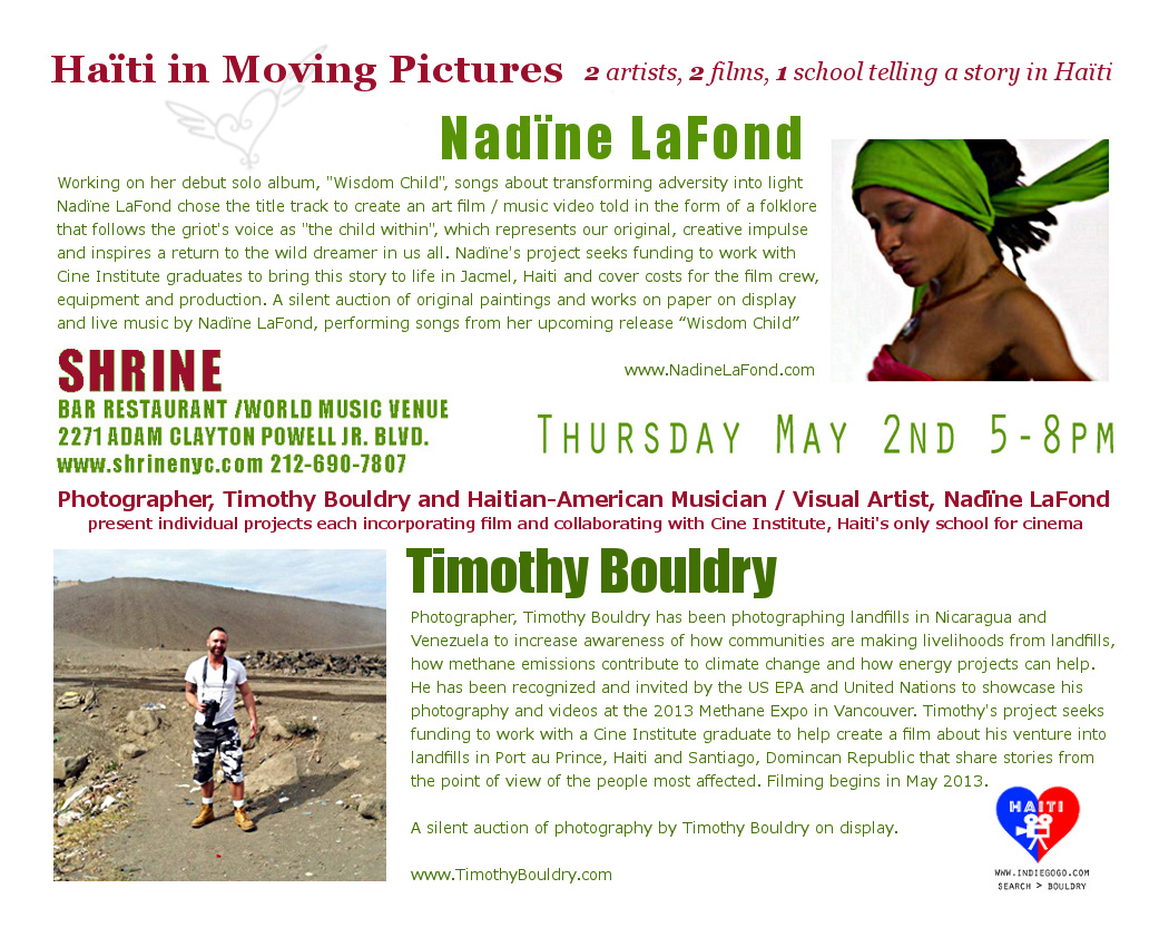Timothy Bouldry and Nadine LaFond's fundraising event at The Shrine in Harlem in support of there individual unique projects in collaboration with the Cine Institute, Haiti's only film school.